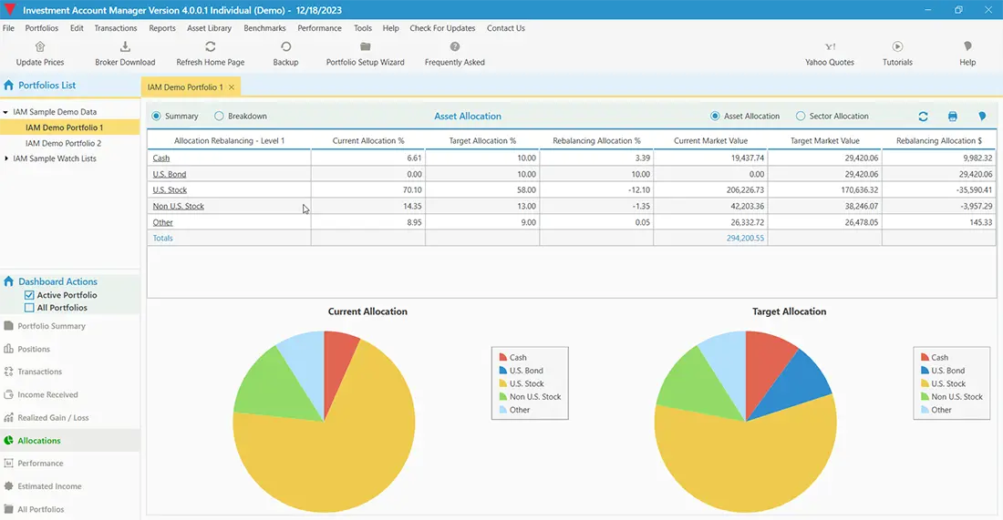"IAM has been extremely helpful to me in personally managing stock and fund portfolios over the past 10-15 years. It has made tax preparation easy and helped with asset allocation. I've found it valuable enough to purchase copies for my son and son-in-law."