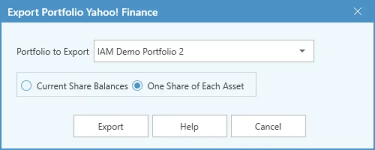 Open IAMv4 and select File Menu | Export | Yahoo Portfolio Data