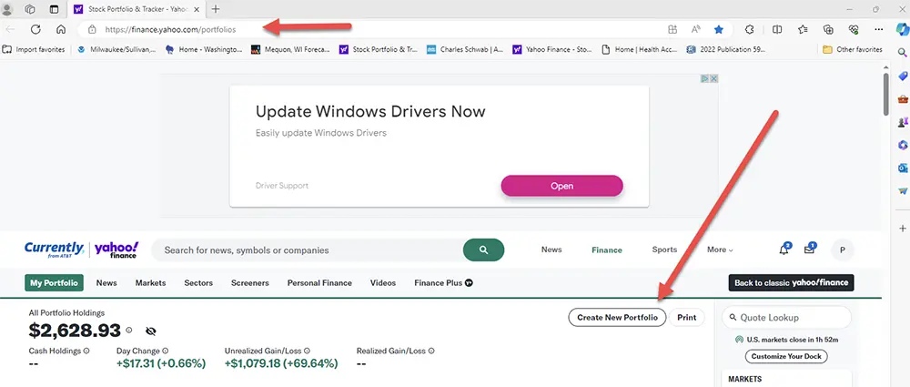 By doing so, you will have uploaded your portfolio to Yahoo!