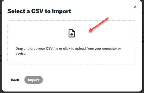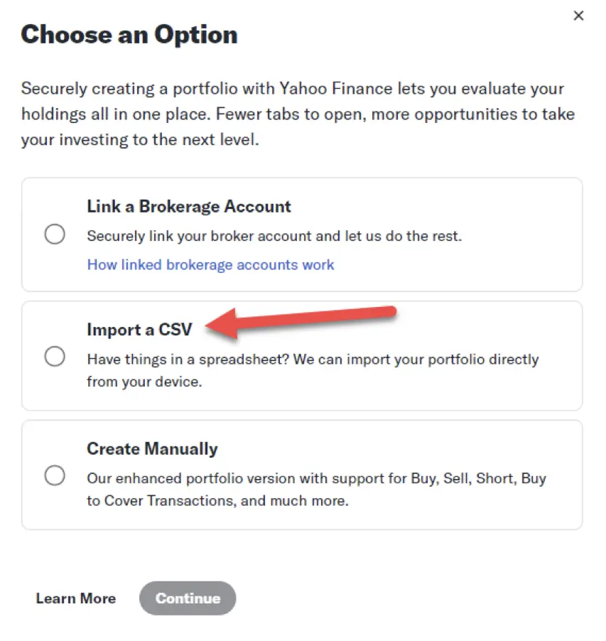 Next, create a portfolio by selecting the option to 'Import a .csv file':